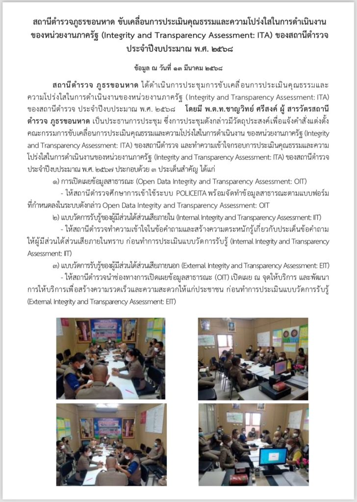 สภ.ขอนหาด ประชุมการขับเคลื่อนการประเมินคุณธรรมและความโปร่งใสในการดำเนินงานของหน่วยงานภาครัฐ (Integrity and Transparency Assessment: ITA)