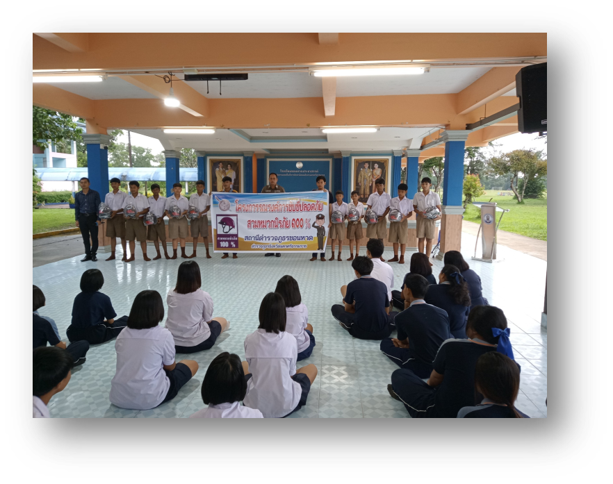 ๒๖ ธ.ค.๖๗ เวลา 08.๐๐ น. ภายใต้อำนวยการของ พ.ต.ท.ชาญวิทย์ ศรีสงค์ สว.สภ.ขอนหาด สั่งการให้ ร.ต.อ.ประสิทธิ์ จันทวดี รอง สวป.สภ.ขอนหาด พร้อมเจ้าหน้าที่ตำรวจจราจร อบรมให้ความรู้ ด้านการใช้รถใช้ถนน การจราจร และมอบหมวกกันน็อค ให้แก่นักเรียน โรงเรียนบ้านขอนหาด ม.๑ ต.ขอนหาด อ.ชะอวด จ.นครศรีธรรมราช